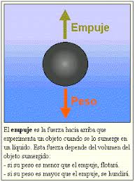 La fuerza de empuje es una fuerza que aparece cuando se sumerge un cuerpo en un fluido. El módulo de ésta viene dado por el peso del volumen del fluido desalojado.